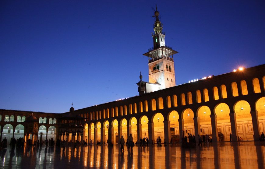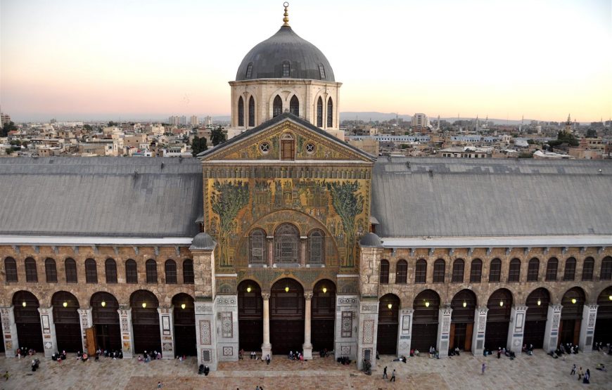 The Umayyad Mosque is located in the heart of the old city of Damascus built by the Umayyad Caliph Al-Walid bin Abdul Malik in the year 705 AD, which was previously the Temple of Jupiter built in the Roman era and then transformed with the passage of time to the Church of John the Baptist.